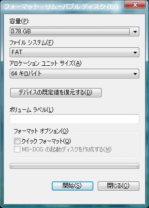 リムーバブルメモリも 32GB を超えるものがフォーマット可能となった。